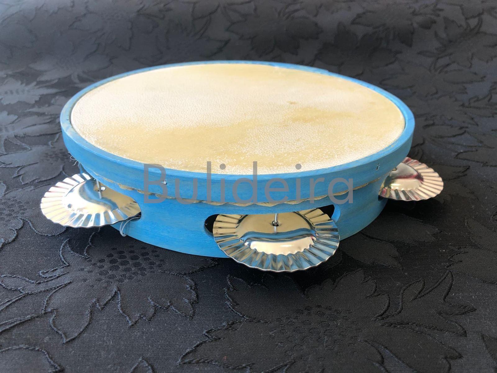 Prezo, información, características e imaxes de Pandeireta de pino pintada 5 pares de ferreñas en azul pertence á categoria pandeiretas de 5 pares de ferreñas (5).